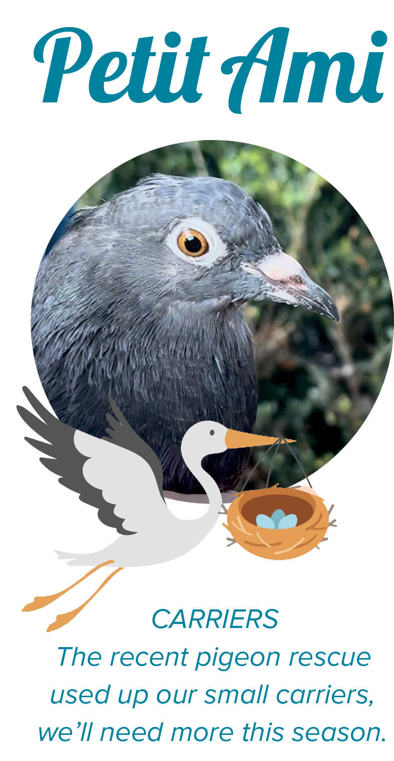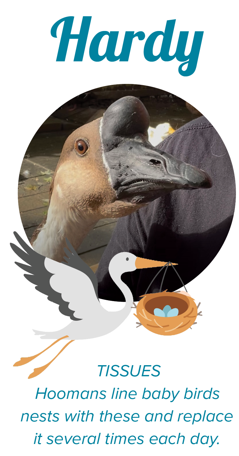 Olive and Vivian have invited their fellow residents to the Baby Bird Shower! Each guest has picked a few things they’d love to help stock the rescue—and you can pitch in to make their wish come true.