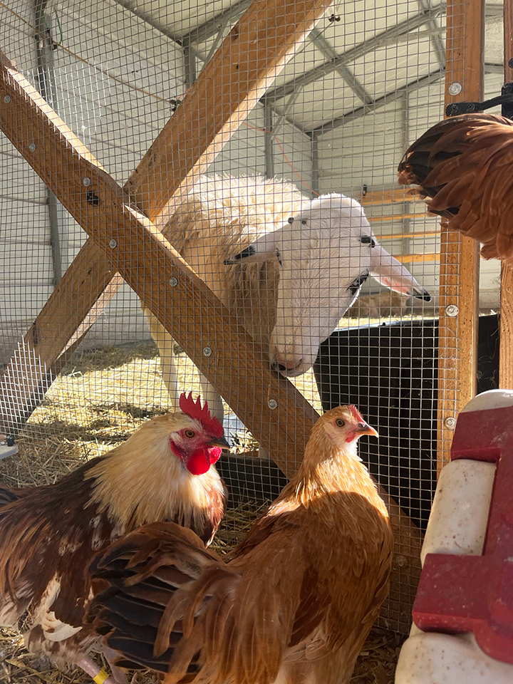 A surprise snowy-morning arrival, Stanley was hand-raised by staff after being rejected by his first-time mom. Curious, playful, and always greeting caregivers with a cheerful ‘baa,’ he grew into a confident young sheep. Lambert became his best bud, guiding him through life at the rescue. Now, Stanley carries on with the same curiosity and playful spirit they shared—still keeping a watchful eye on the flock and holding out hope that he can grab a bite of the emus’ salads.