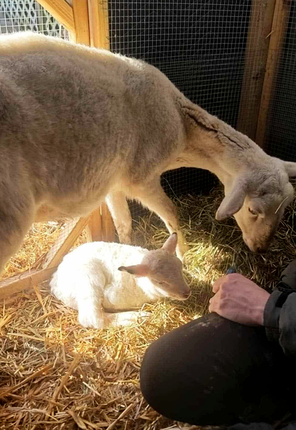 Although Vivian is an excellent sheep, first-time motherhood didn’t come easily, and she rejected Stanley. As a result, he was hand-raised by our dedicated staff, forming close bonds with his caretakers from the very beginning.